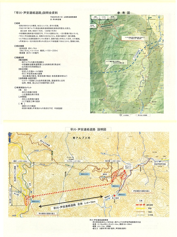 それを受けて、南アルプス、早川両市町の議会、住民等に県土整備部より添付のとおり内容の説明がありました。